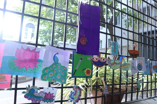 Every class was assigned a festival based on which they were given a colouring sheet which they had to decorate and bring back. And voila! The eye-catching decorated sheets adorned the walkways. To boost the confidence of the little ones and to impart knowledge about the different festivals celebrated in India, two students from each class of the Pre-Primary department were taken from class to class to share some information about the festivals of India. Not only that, the little ones came dressed in their festive best, bringing delicious homemade treats to share. The day ended with showing a video on festivals to help them learn about the significance of Festivals.