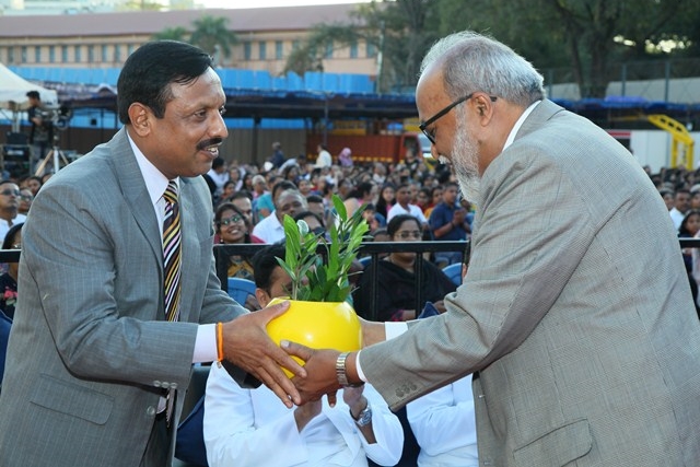 Our chief guest, Mr Vinay Mruthyunjaya (Treasurer and Official Spokesperson, KSCA) and his spouse were ushered in by the guard of honour. Presiding over the function was the Rector of St. Joseph’s Institutions, Rev Fr Brian Pereira SJ. The closely associated PTA of the school was represented by Vice President Mr K C Joseph and Secretary Mrs Sudeshna Ghosh; while the OBA was represented by the President Mr Ian Lewis and the Secretary Mr Rajiv Shenoy.