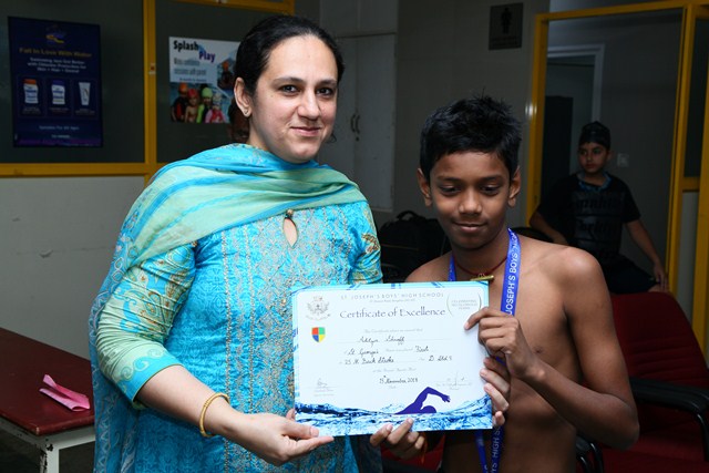 The Chief Guest, Mr. Niranjan K., distributed the prizes and urged the swimmers to excel in whatever the school has to offer as well as to appreciate the hard work and unstinting support of their parents.