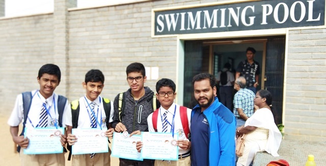The SJBHS Senior Swimming team participated in the 4 X 50 mt Baldwin Boys’ School inter-school relay and were placed 2nd. The team: Akash Mani, Shreyas Manjunath, Kalp S Bohra and Calvin Antony Joseph.